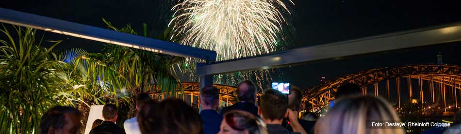 Verfolgen Sie das musiksynchrone Höhenfeuerwerk aus erhöhter Perspektive über der Kölner Altstadt. Der mediterrane Dachgarten unter freiem Himmel sowie die stilvollen Innenräume mit Tanzfläche schaffen den passenden Rahmen. Hochwertiges Fingerfood, eine umfassende Getränke-Flatrate inklusive Champagner-Arrangement aus Großflaschen sowie ein Live-DJ begleiten Sie durch den Sommerabend und machen ihn zu einem besonderen Erlebnis für Genießer.